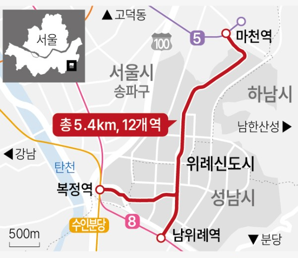 - 위례 트램: 총연장 약 5.4km, 12개 정거장, 2025년 착공 예정